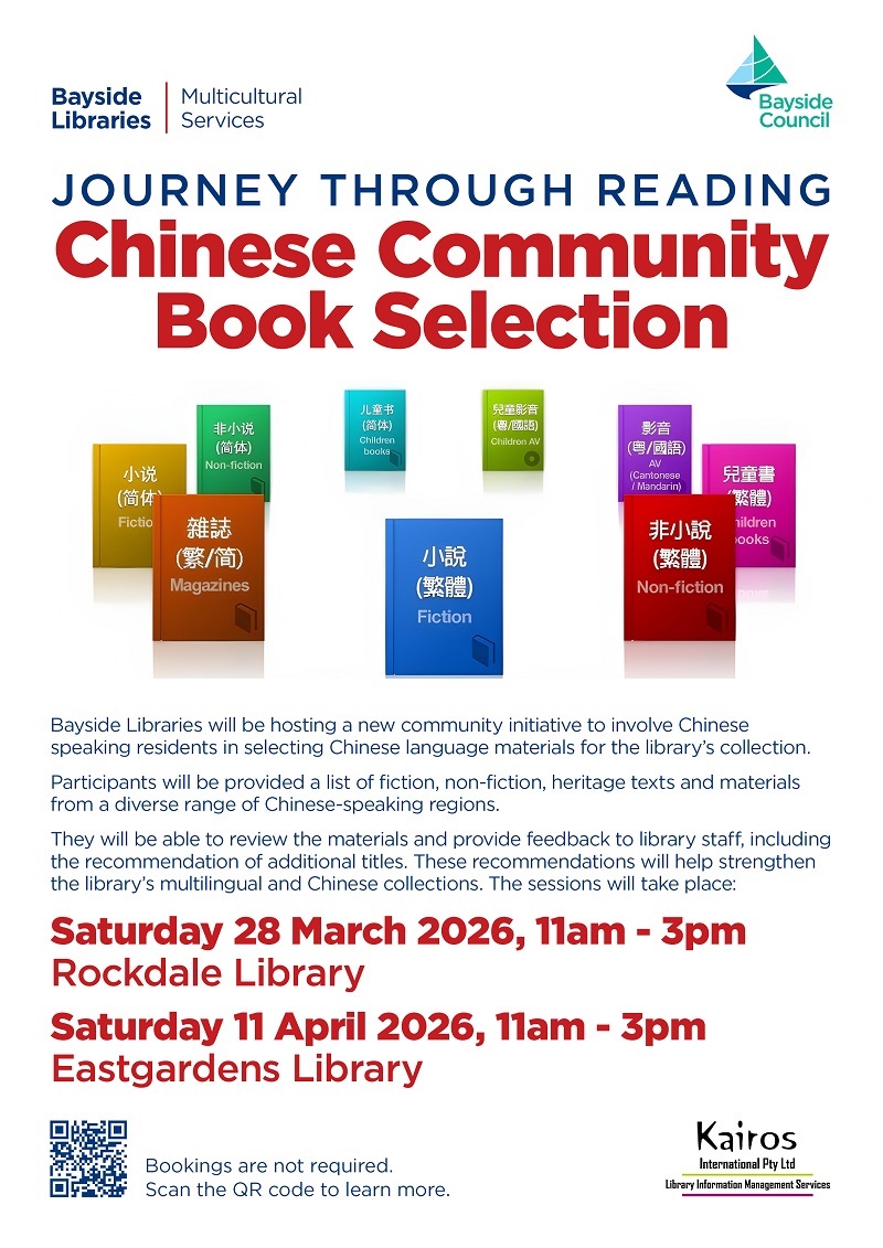 電話預約: Bayside 圖書館多元文化服務 02 9562 1821